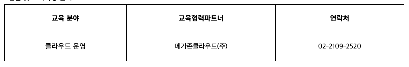 - 클라우드 운영 전문가 과정: AWS, Azure 등 클라우드 플랫폼의 이해와 활용, 클라우드 서비스 개발 및 운영 등 클라우드 엔지니어가 되기 위한 기초부터 응용까지 배울 수 있는 과정입니다.