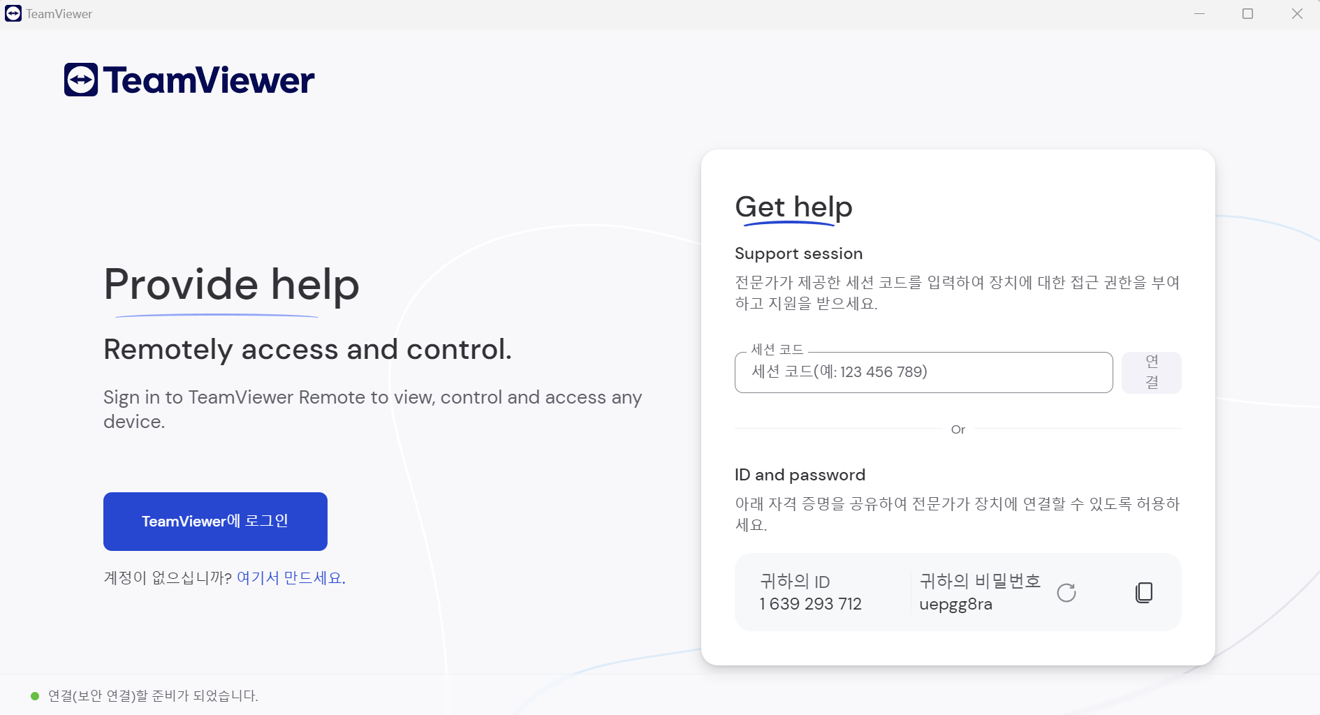 • 모든 TeamViewer 연결은 엔드투엔드 암호화됩니다. 그 누구도 연결 내용을 볼 수 없습니다.