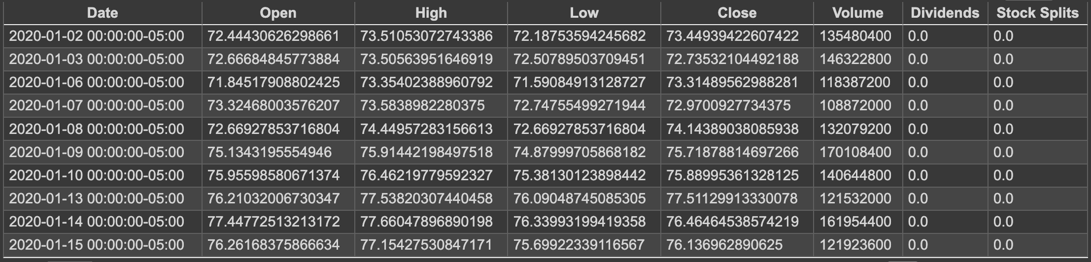 data = stock.history(start="2020-01-01", end="2021-01-01")
