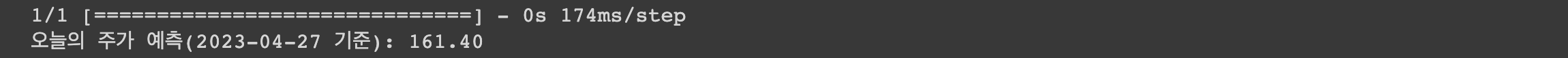 print(f"오늘의 주가 예측(2023-04-27 기준): {today_price[0][0]:.2f}")